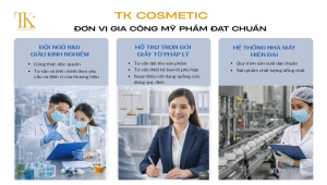 Hãy để TK Cosmetic giúp bạn hiện thực hóa ý tưởng một cách an toàn và bền vững nhất. Chúng tôi cung cấp giải pháp gia công trọn gói: từ nghiên cứu công thức độc quyền, cung ứng nguyên liệu cao cấp đến hỗ trợ đầy đủ hồ sơ pháp lý, công bố mỹ phẩm và xác nhận nội dung quảng cáo.
